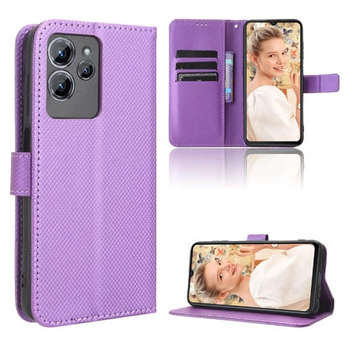 Funda de Cuero para Oukitel C32 con Textura de Diamante (Púrpura)