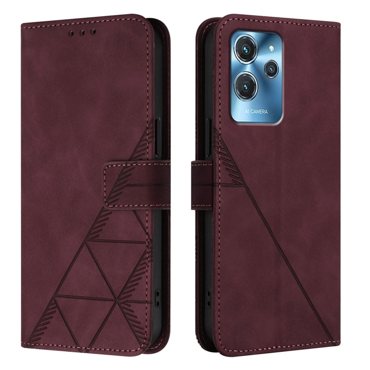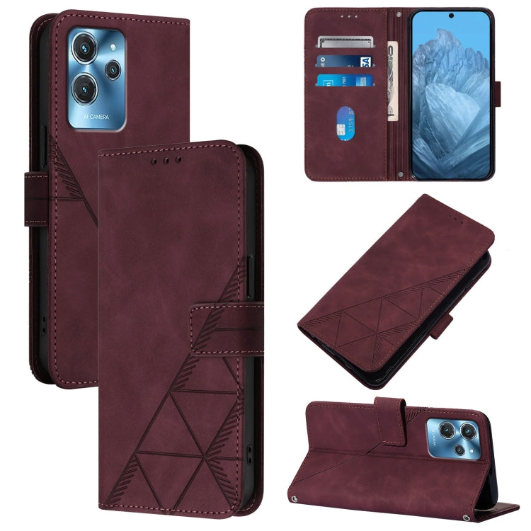 Funda para Oukitel C32 Crossbody de Cuero con Tapa en Relieve 3D (Rojo Vino)