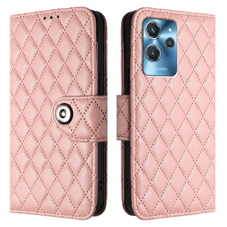 Funda para Oukitel C32 de Cuero con Tapa Textura Rómbica y Cordón (Rosa Coral)