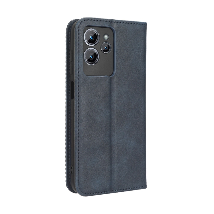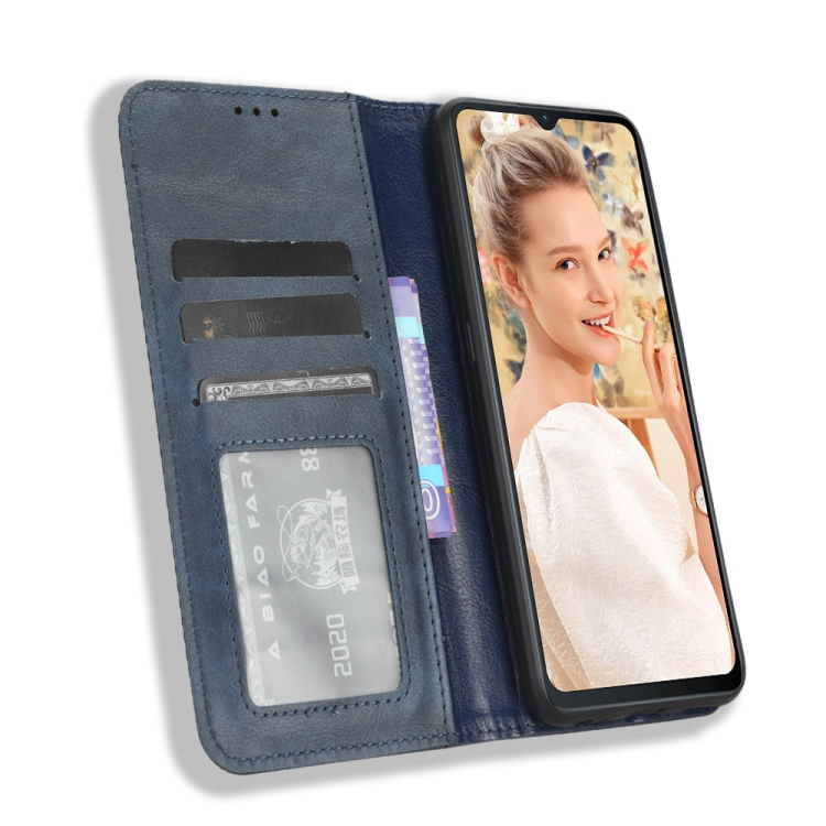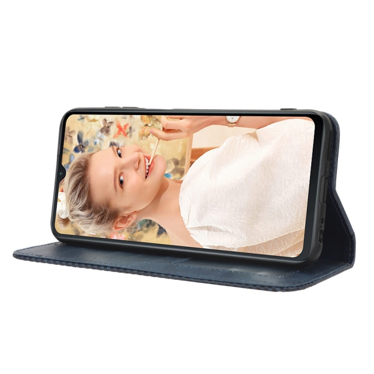 Funda de Cuero con Hebilla Magnética para Oukitel C32 Textura Retro (Azul)