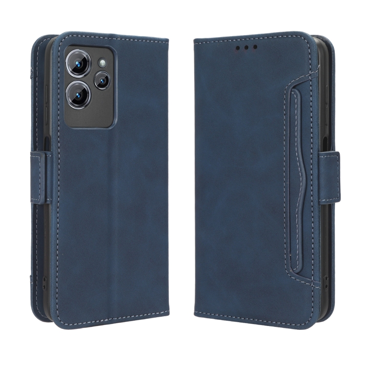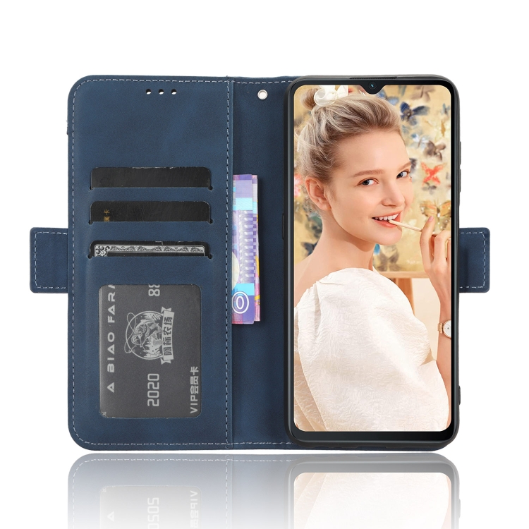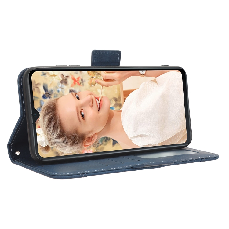 Funda de Cuero para Oukitel C32 con Textura Becerro y Ranuras para Tarjetas (Azul)
