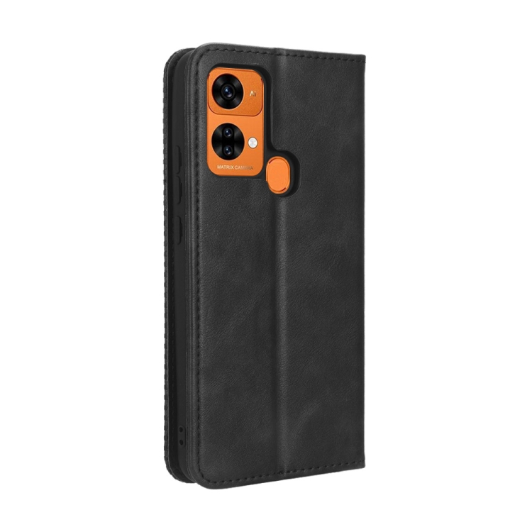 Funda de Cuero para Oukitel C33 con Hebilla Magnética y Textura Retro (Negro)