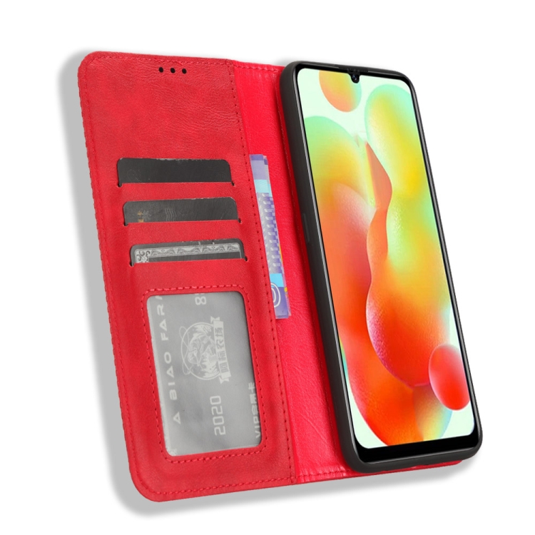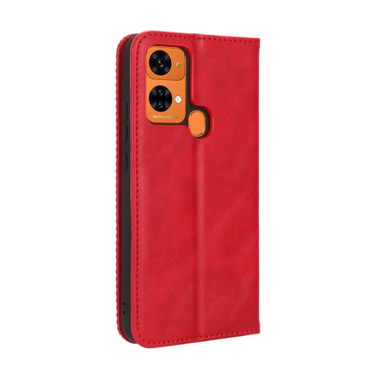 Funda de Cuero para Oukitel C33 con Hebilla Magnética y Textura Retro (Rojo)