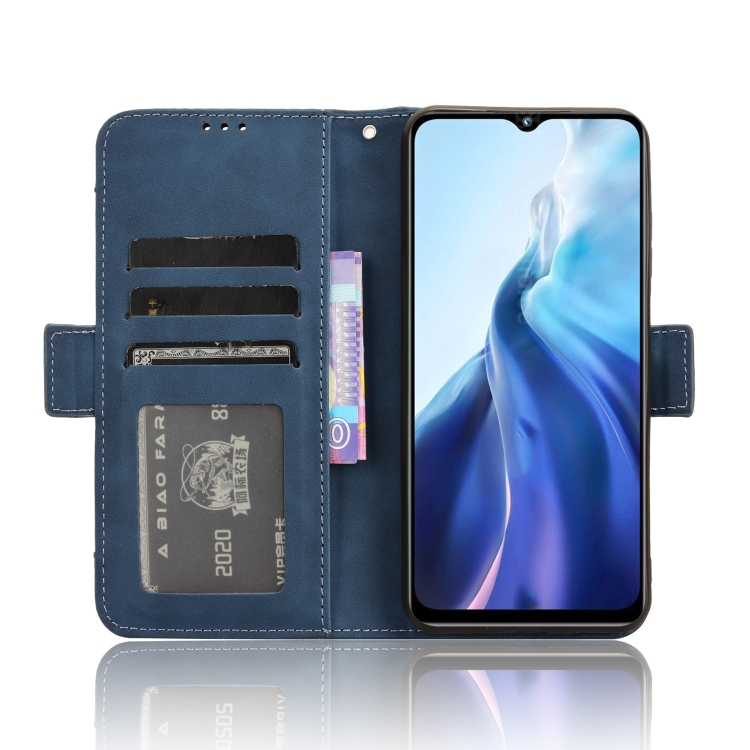 Funda de Cuero para Oukitel C35 / C36 con Textura Becerro y Ranuras para Tarjetas (Azul)