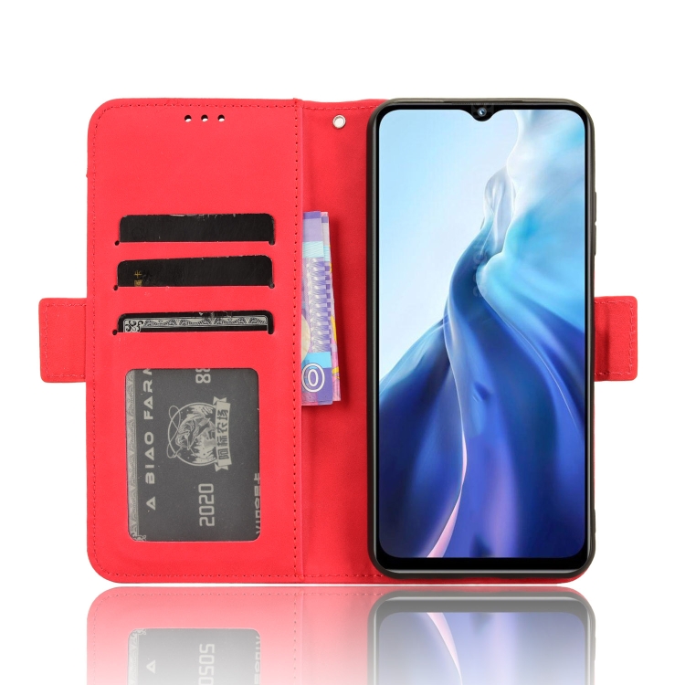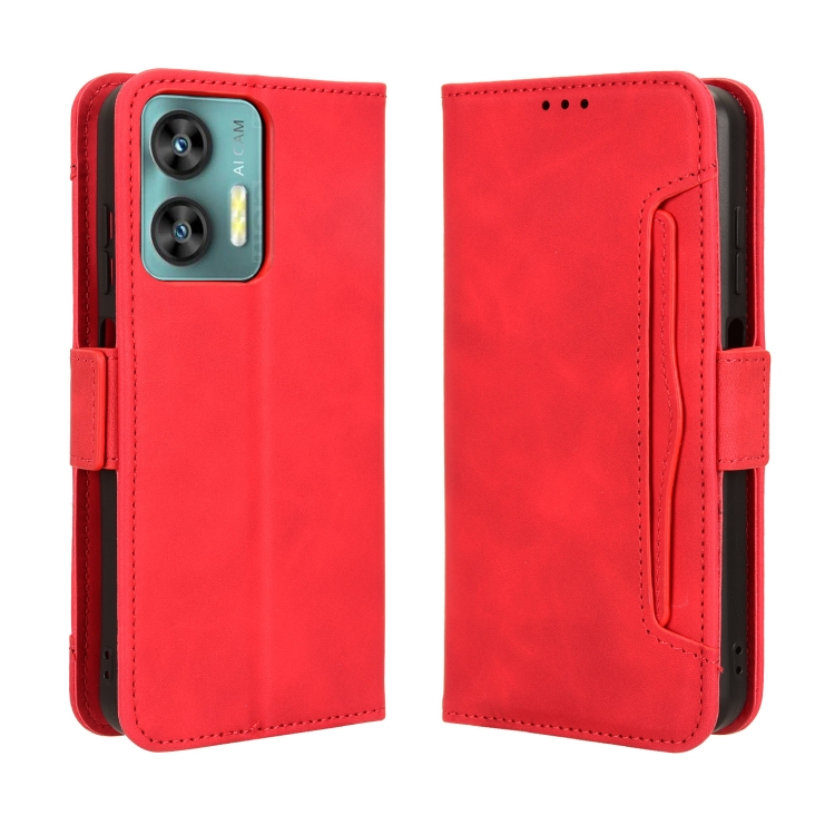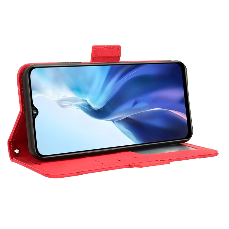 Funda de Cuero para Oukitel C35 y C36 con Textura Becerro y Ranuras para Tarjetas (Rojo)