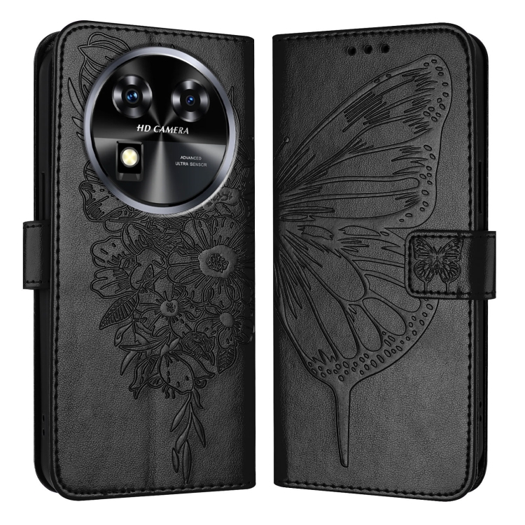 Funda de Cuero para Oukitel C37 con Mariposa en Relieve (Negro)