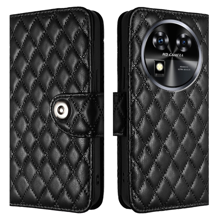 Funda para Oukitel C37 de Cuero con Tapa Textura Rómbica y Cordón (Negro)