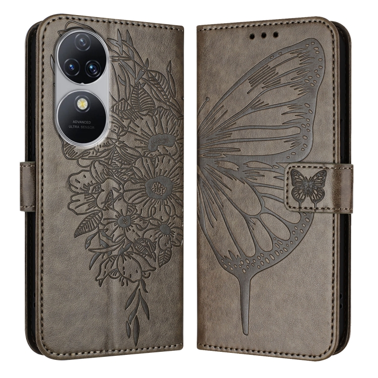 Funda de Cuero para Oukitel C38 con Mariposa en Relieve (Gris)