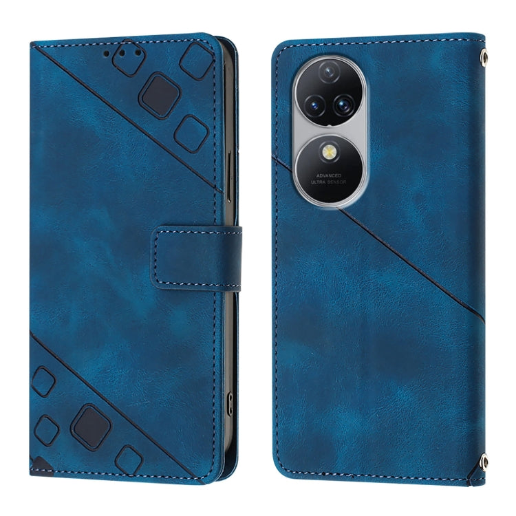 Funda de Cuero para Oukitel C38 Skin Feel con Relieve (Azul)