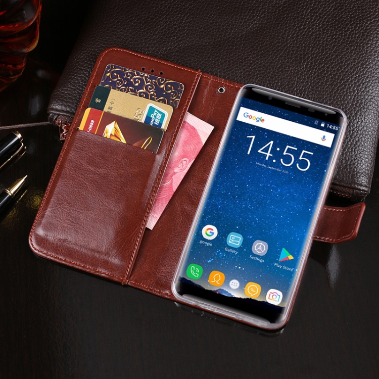 Funda de Cuero Oukitel K5000 Idewei Crazy Horse con Tapa Horizontal, Soporte y Ranuras para Tarjetas (Marrón)