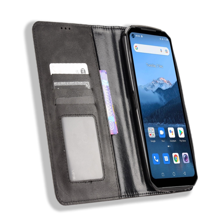Funda de Cuero para Oukitel Wp16 con Hebilla Magnética y Textura Retro (Negro)