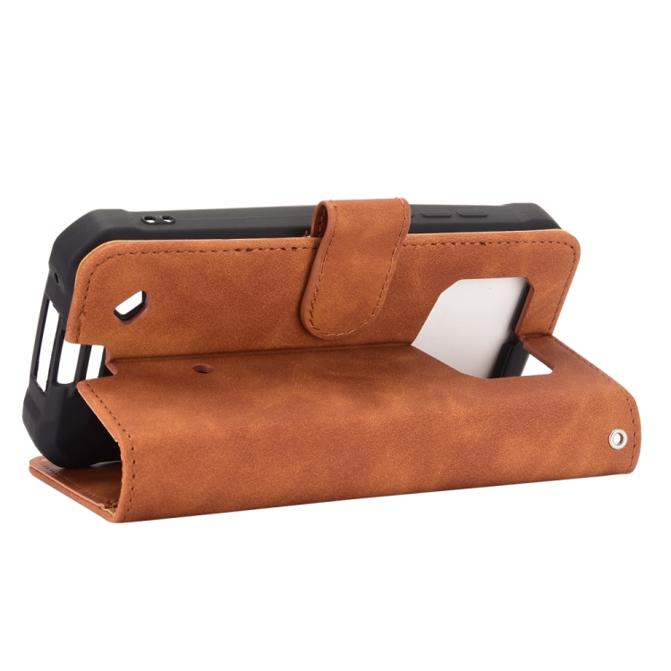 Funda de Cuero PU para Oukitel Wp5 con Textura Piel de Becerro, Hebilla Magnética, Soporte y Ranuras (Marrón)