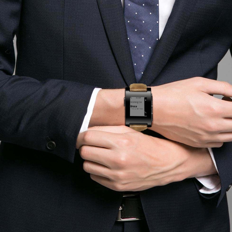 Correa de Reloj para Pebble Gen 1 Cuero Genuino con Cera de Aceite (Marrón Amarillo)