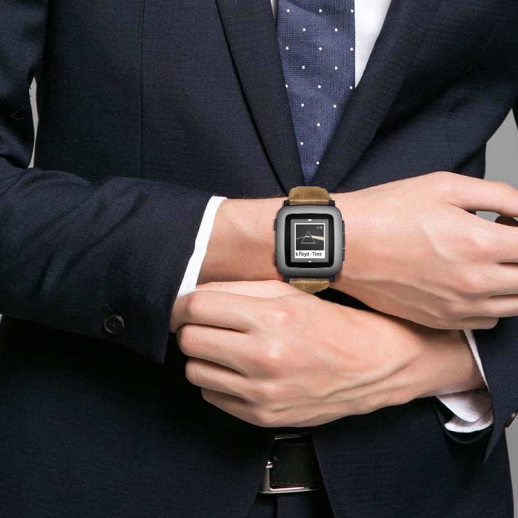 Correa de Reloj Pebble Time Cuero Genuino Oil Wax (Marrón Amarillo)