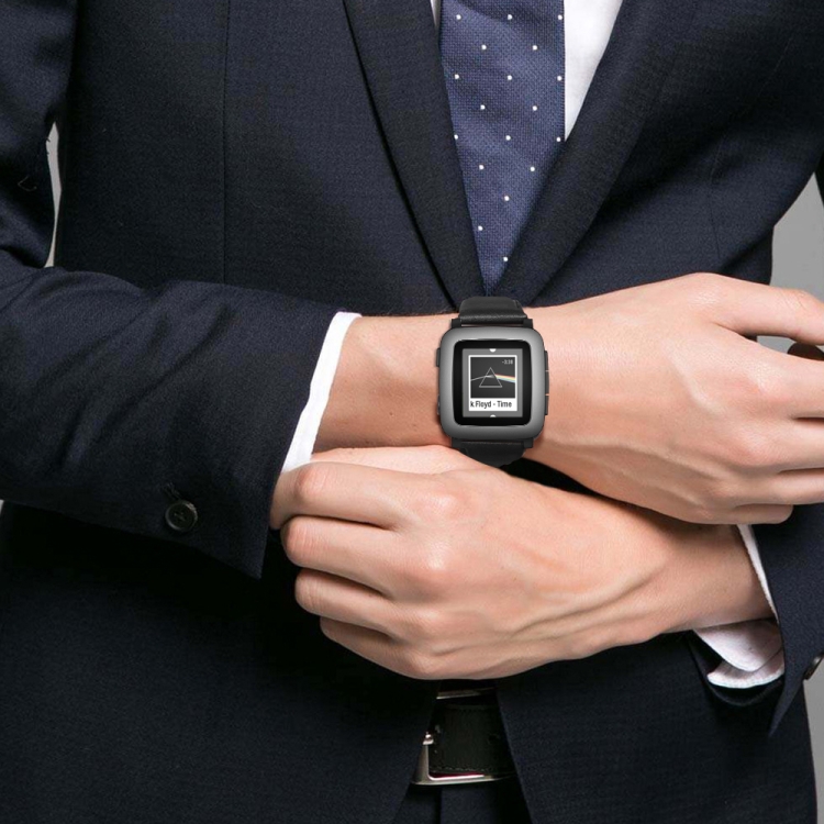 Correa de Reloj para Pebble Time Oil Wax Cuero Genuino (Negro)