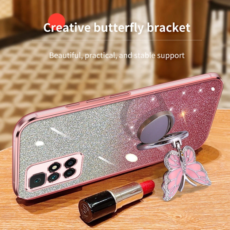 Para Redmi 10 Funda para Teléfono de TPU con Soporte de Mariposa con Brillo Degradado Plateado (Azul Sierra)