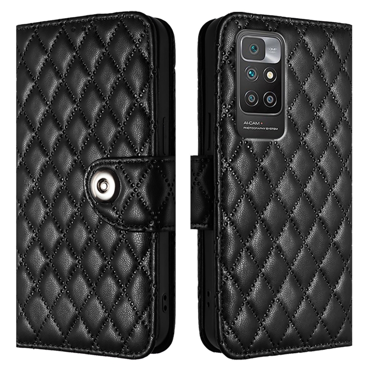 Para Redmi 10 / Redmi 10 2022 Funda para Teléfono de Cuero con Tapa con Textura Rómbica y Cordón (Negro)