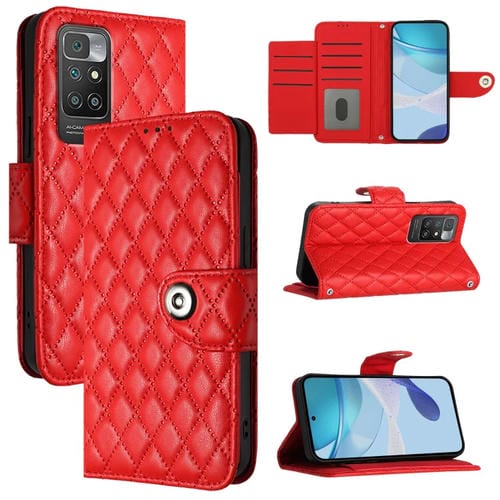 Para Redmi 10 / Redmi 10 2022 Funda para Teléfono de Cuero con Tapa con Textura Rómbica y Cordón (Rojo)