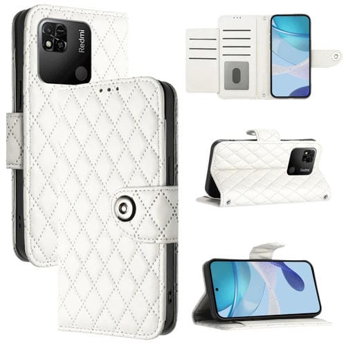 Para Redmi 10A / 9C Funda de Cuero con Tapa con Textura Rómbica y Cordón (Blanco)
