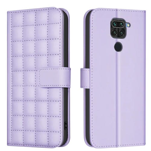Para Redmi 10X 4G / Note 9 Funda de Cuero para Teléfono con Textura Cuadrada (Púrpura)