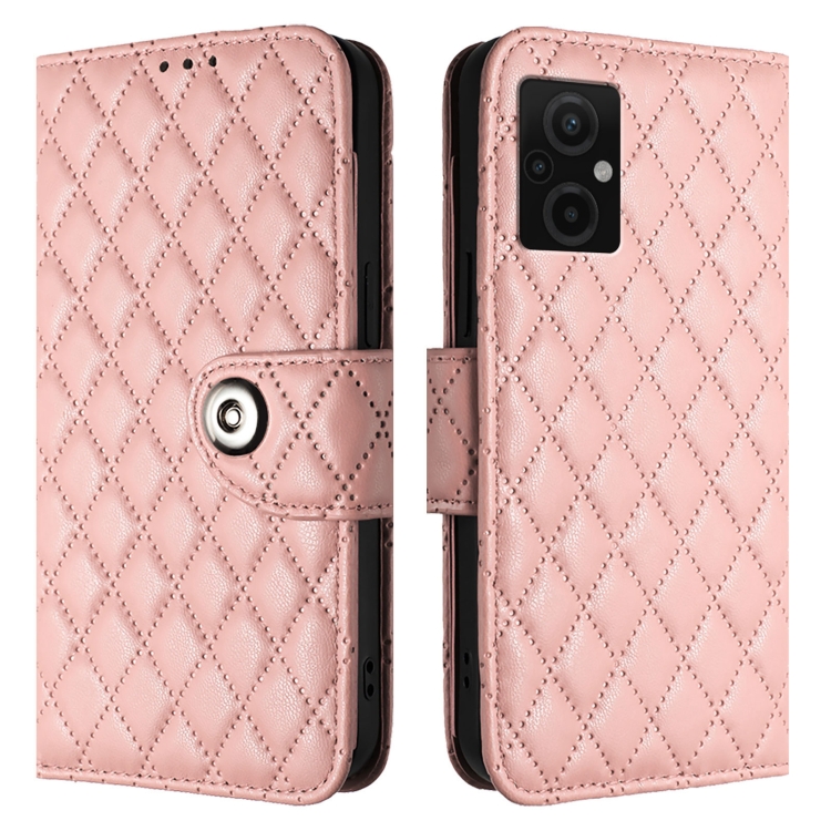 Para Redmi 11 Prime 5G / Redmi 10 5G Funda para Teléfono de Cuero con Tapa con Textura Rómbica y Cordón (Rosa Coral)
