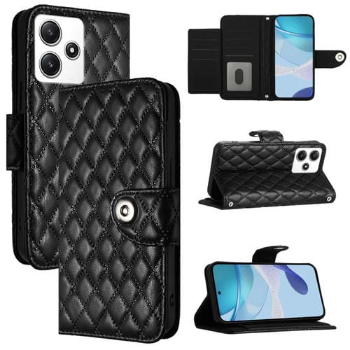 Para Redmi 12 4G Global / India Funda para Teléfono con Tapa de Cuero con Textura Rómbica y Cordón (Negro)