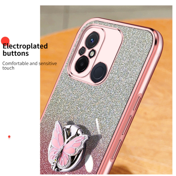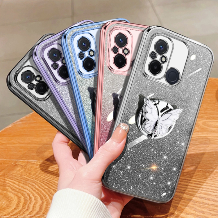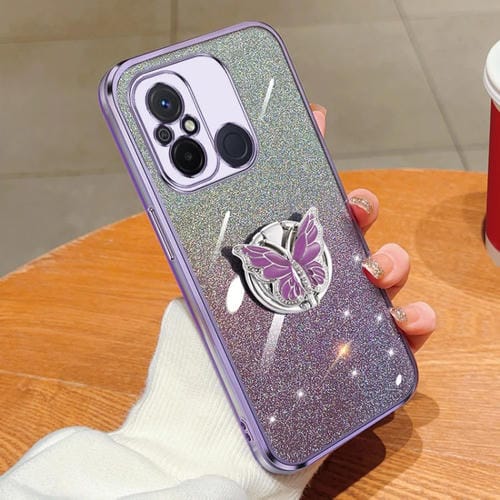 Para Redmi 12C Estuche para Teléfono de TPU con Soporte de Mariposa con Brillo Degradado Plateado (Púrpura)