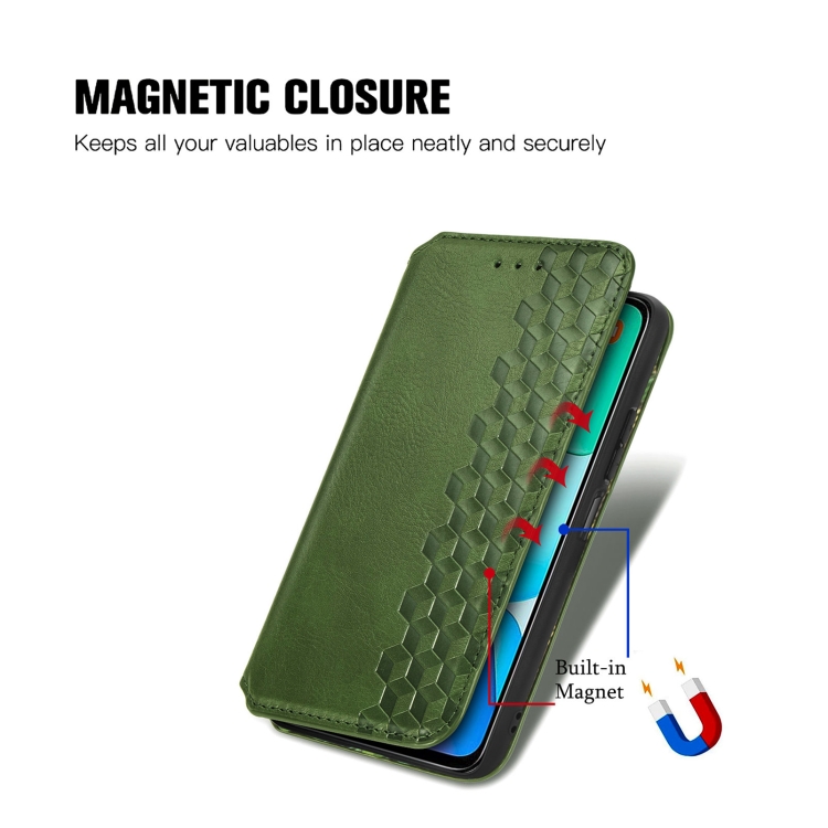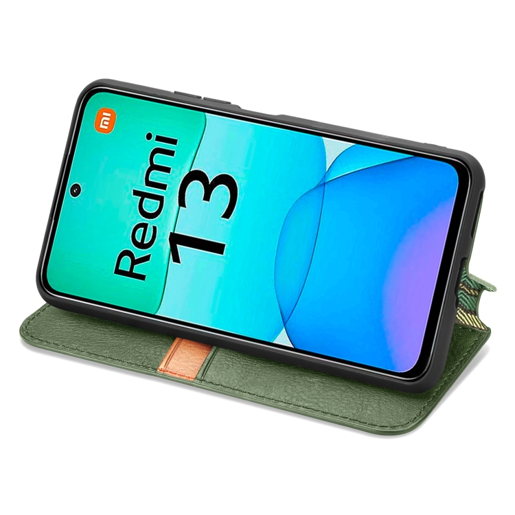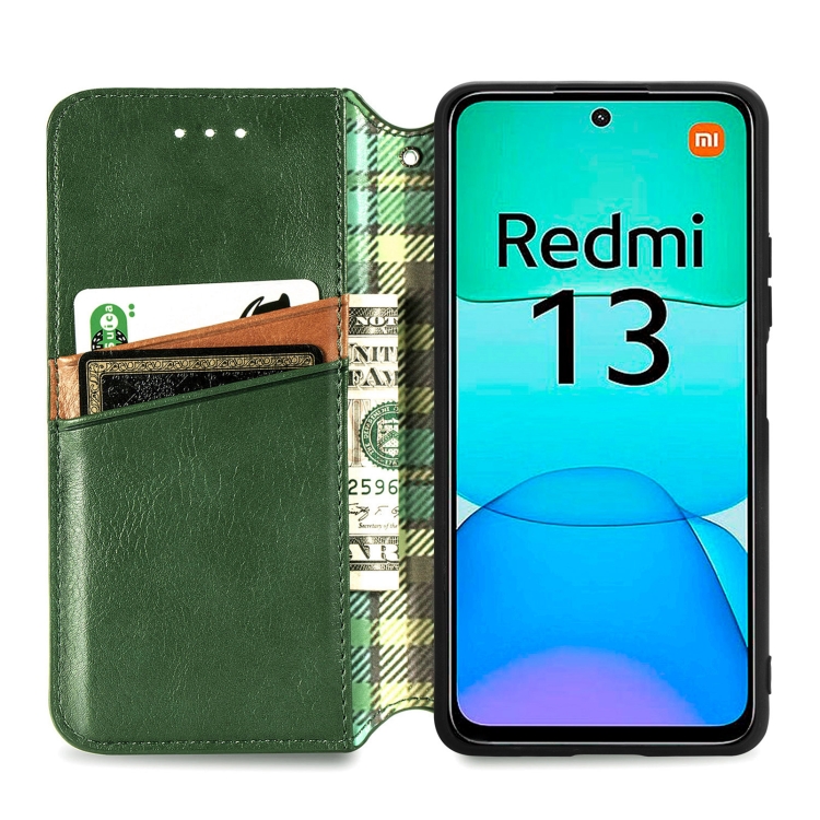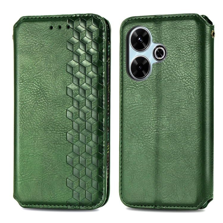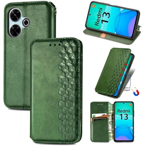 Para Redmi 13 4G Cubic Grid Funda de Teléfono de Cuero Magnético Prensado (Verde)
