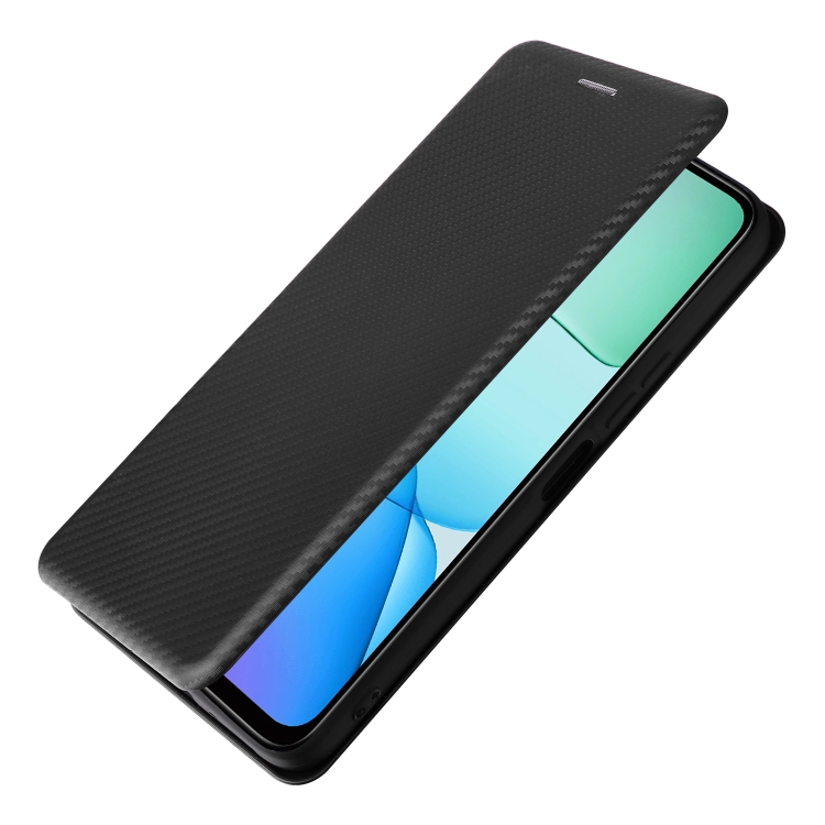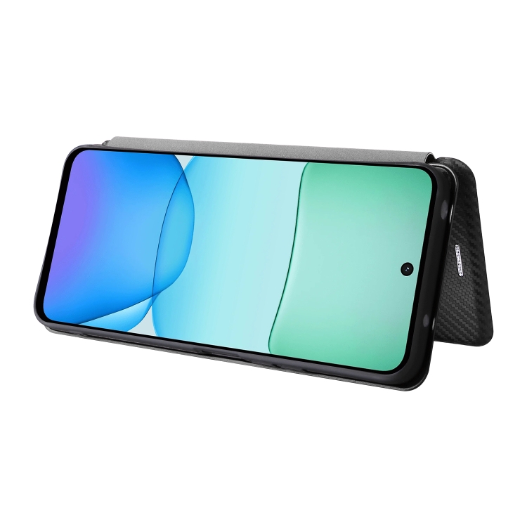 Para Redmi 13 4G Funda de Teléfono de Cuero con Tapa con Textura de Fibra de Carbono (Negro)