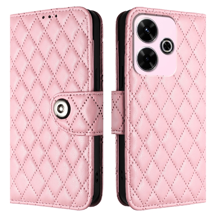 Para Redmi 13 4G / Note 13R Funda para Teléfono con Tapa de Cuero con Textura Rómbica y Cordón (Rosa)