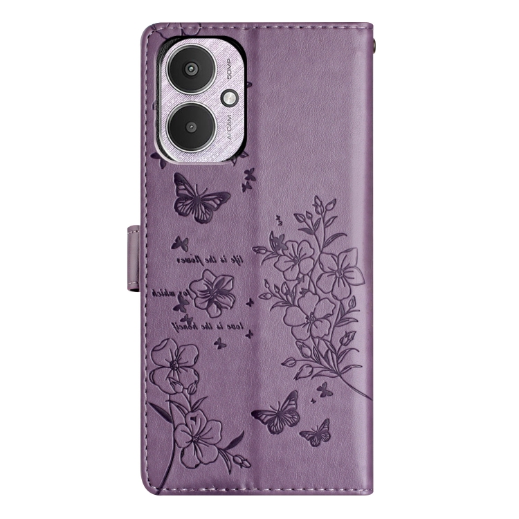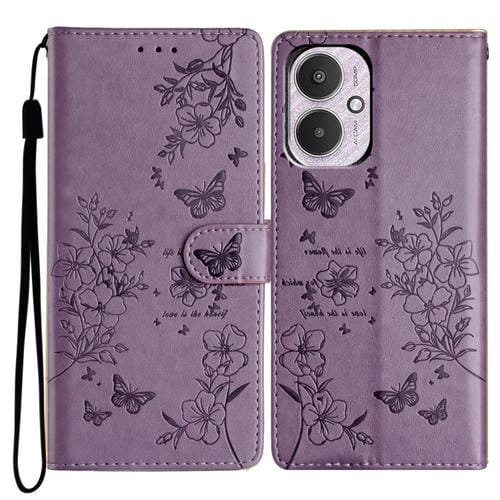 Para Redmi 13C 4G Funda de Cuero para Teléfono con Mariposas y Flores (Púrpura)