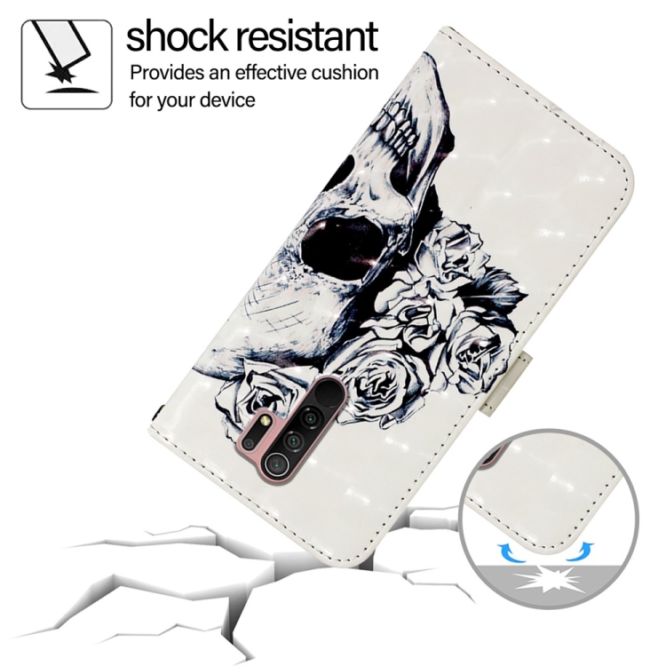 Para Redmi 9/9 Prime India Funda para Teléfono de Cuero con Tapa Horizontal con Pintura 3D (Calavera)