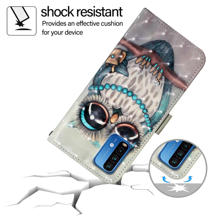 Para Redmi 9 Power / 9T Global / Xiaomi Poco M3 Funda para Teléfono de Cuero con Tapa Horizontal con Pintura 3D (Búho Gris)