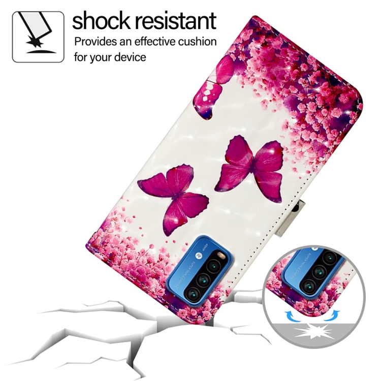 Para Redmi 9 Power / 9T Global / Xiaomi Poco M3 Funda para Teléfono de Cuero con Tapa Horizontal con Pintura 3D (Mariposa Rosa)
