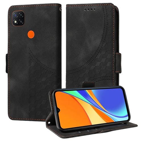 Para Redmi 9C / 9 India Funda para Teléfono de Cuero Estrellado con Rombos En Relieve (Negro)