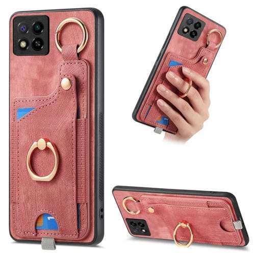 Para Redmi 9C Funda para Teléfono con Bolsa para Tarjeta con Anillo y Sensación de Piel Retro con Lazo para Colgar (Rosa)