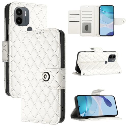 Para Redmi A1+ / A2+ Funda para Teléfono de Cuero con Tapa con Textura Rómbica y Cordón (Blanco)
