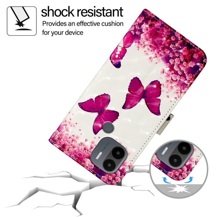 Para Redmi A1 + / A2 + / Poco C50 Funda para Teléfono de Cuero con Tapa Horizontal con Pintura 3D (Mariposa Rosa)
