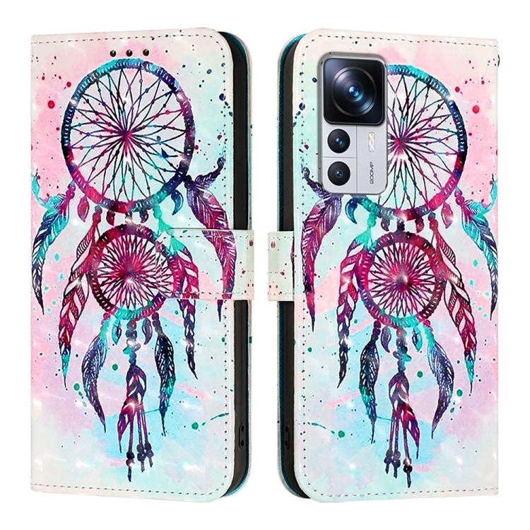 Para Redmi K50 Ultra / Xiaomi 12T / 12T Pro Funda de Teléfono de Cuero con Tapa Horizontal con Pintura 3D (Campanas de Viento con Forma de Gota de Color)
