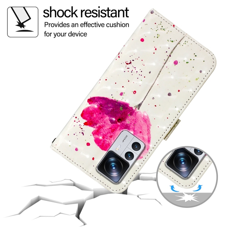 Para Redmi K50 Ultra / Xiaomi 12T / 12T Pro Funda de Teléfono de Cuero con Tapa Horizontal con Pintura 3D (Flor)