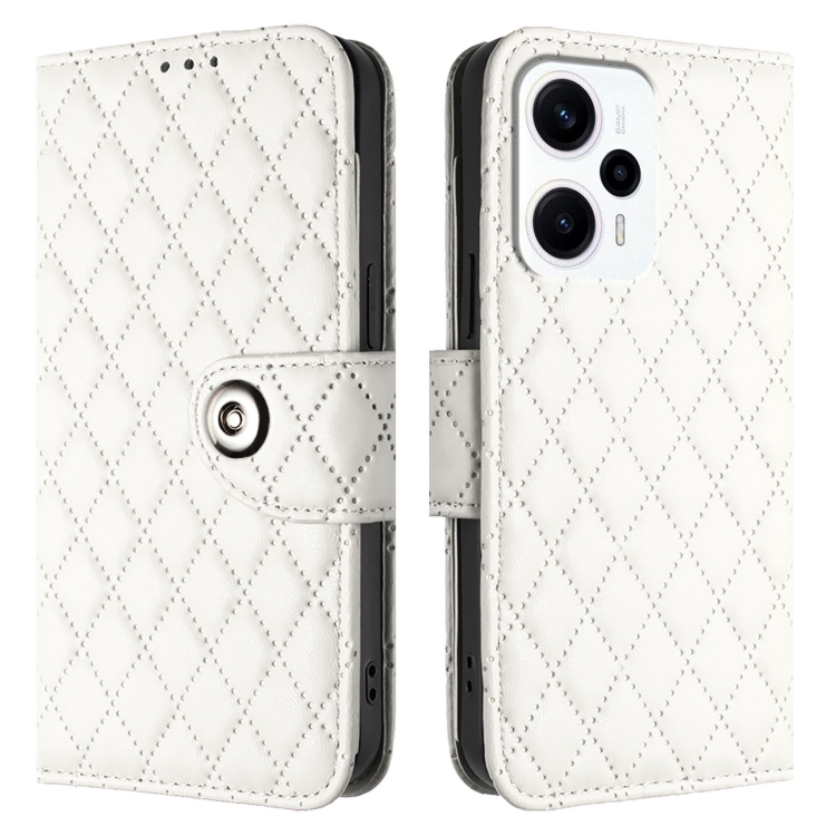 Para Redmi K50I Funda de Cuero con Tapa con Textura Rómbica y Cordón (Blanco)