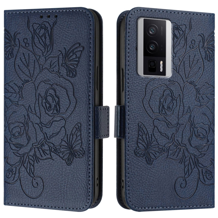 Para Redmi K60 / K60 Pro Funda de Teléfono de Cuero Antirrobo Rfid con Relieve Rosa (Azul Oscuro)