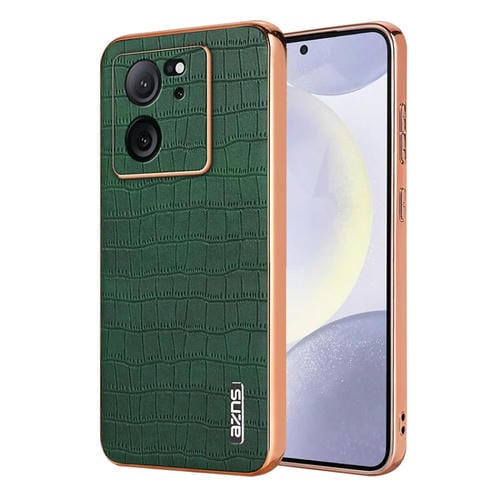 Para Redmi K60 Ultra Azns Caja de Teléfono de Cobertura Total con Textura de Cocodrilo con Marco Galvanizado (Verde)