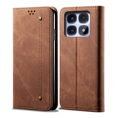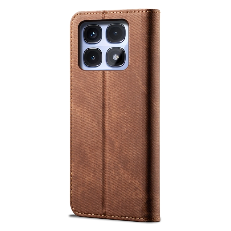 Para Redmi K70 Ultra 5G Funda de Cuero con Tapa Horizontal de Estilo Casual con Textura Vaquera (Marrón)
