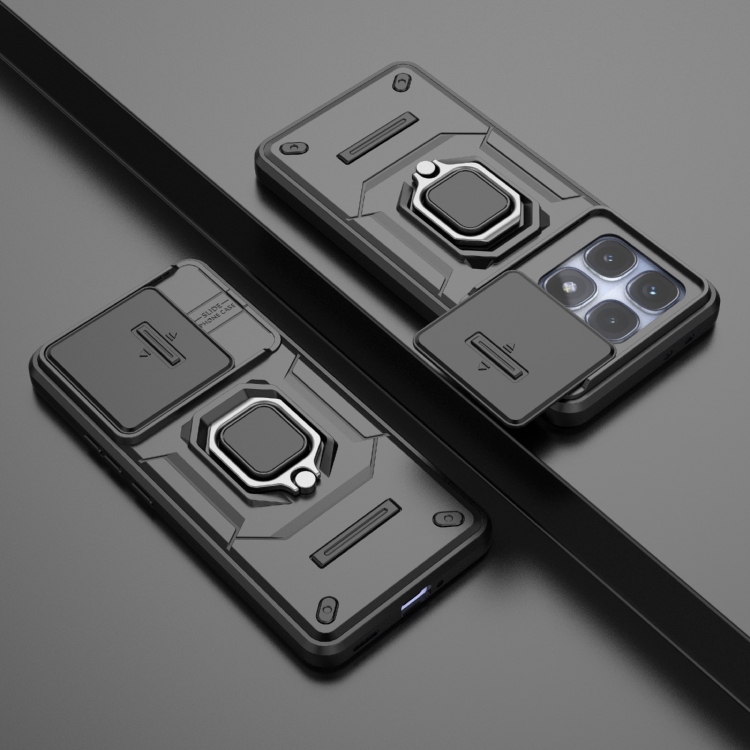 Para Redmi K70 Ultra Global Sliding Camshield TPU + PC Funda para Teléfono a Prueba de Golpes con Soporte (Negro)