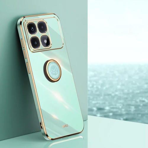 Para Redmi K70 Ultra Xinli Funda a Prueba de Golpes de TPU con Borde Dorado y Revestimiento 6D Recto con Soporte para Anillo (Verde Menta)