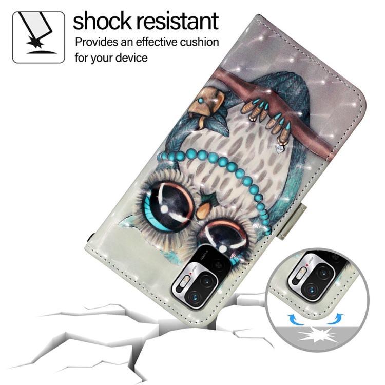 Para Redmi Note 10 5G / Note 10T 5G Funda para Teléfono de Cuero con Tapa Horizontal con Pintura 3D (Búho Gris)
