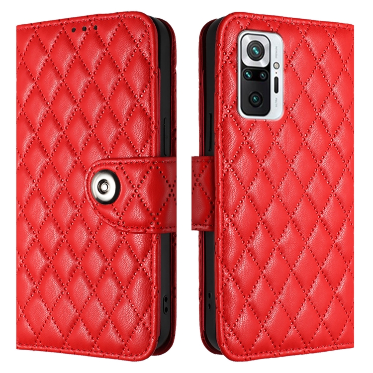 Para Redmi Note 10 Pro India Funda de Cuero con Tapa con Textura Rómbica y Cordón (Rojo)