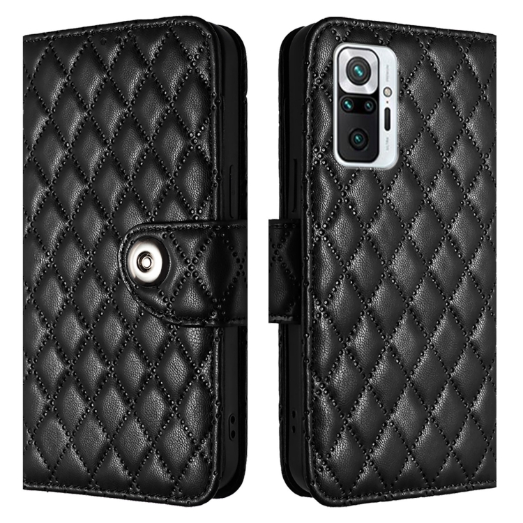 Para Redmi Note 10 Pro / Note 10 Pro Max Funda para Teléfono de Cuero con Tapa con Textura Rómbica y Cordón (Negro)