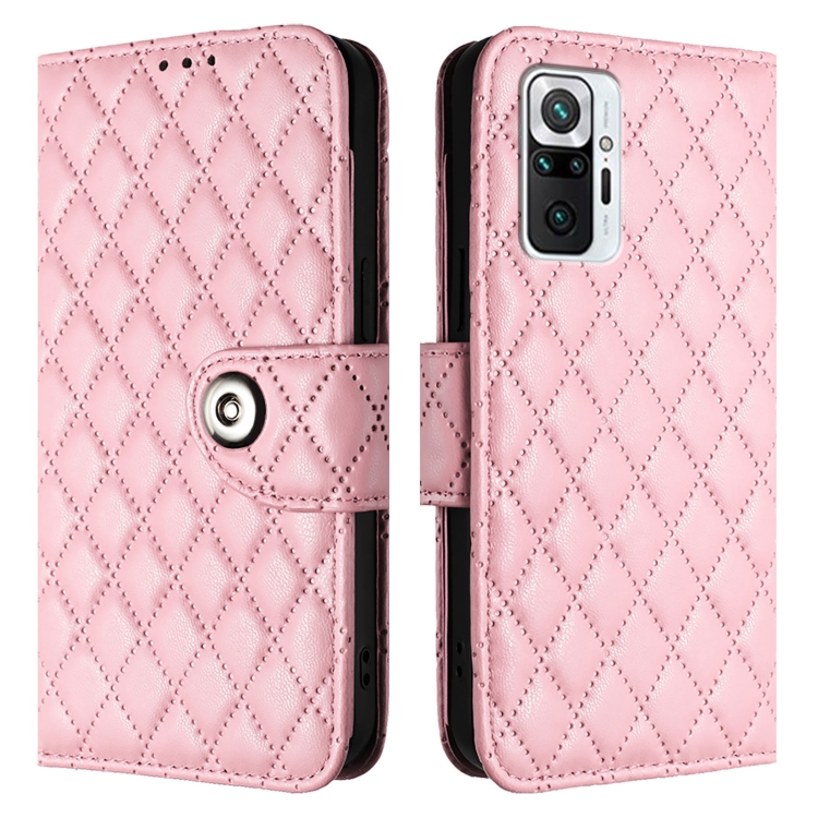 Para Redmi Note 10 Pro / Note 10 Pro Max Funda para Teléfono de Cuero con Tapa con Textura Rómbica y Cordón (Rosa)
